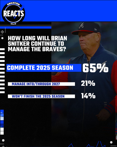 The image truncates the original choices a bit, so let’s elucidate them some more. While there’s a chance that he is shown the door in the middle of the season, given the Braves’ slow start, only 14 percent of respondents went with that option. After that, we had the possibility that he finishes the 2025 season but hangs up his proverbial cleats before 2026 — this is the option that the majority, nearly two-thirds of respondents chose. A poor season certainly lends itself to this outcome if not a midseason resignation or firing, and the Braves have some work to do to avoid falling into a poor season at this point. That leaves the third option of persisting into 2026 and beyond, which about a fifth of respondents selected.
