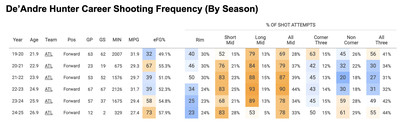 So, this (shameless plug) has aged well*. There’s been a lot of “we owe De’Andre Hunter an apology” talk from Hawks’ fans online recently to which I chortle and say: “we?”.