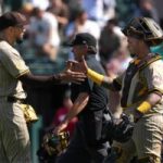 The Atlanta Braves and reliever Robert Suarez are closing in on a three-year, $45 million contract. ESPN’s Jeff Passan was first on the news. Suarez, one of the top relievers on the market, goes to a team looking to add payroll this offseason. Apr 9, 2025; West Sacramento, California, USA; San Diego Padres pitcher Robert Suarez (left) and catcher Martín Maldonado (15) celebrate … [Read more...] about Report: Braves Ink Reliever Robert Suarez to Three-Year Deal