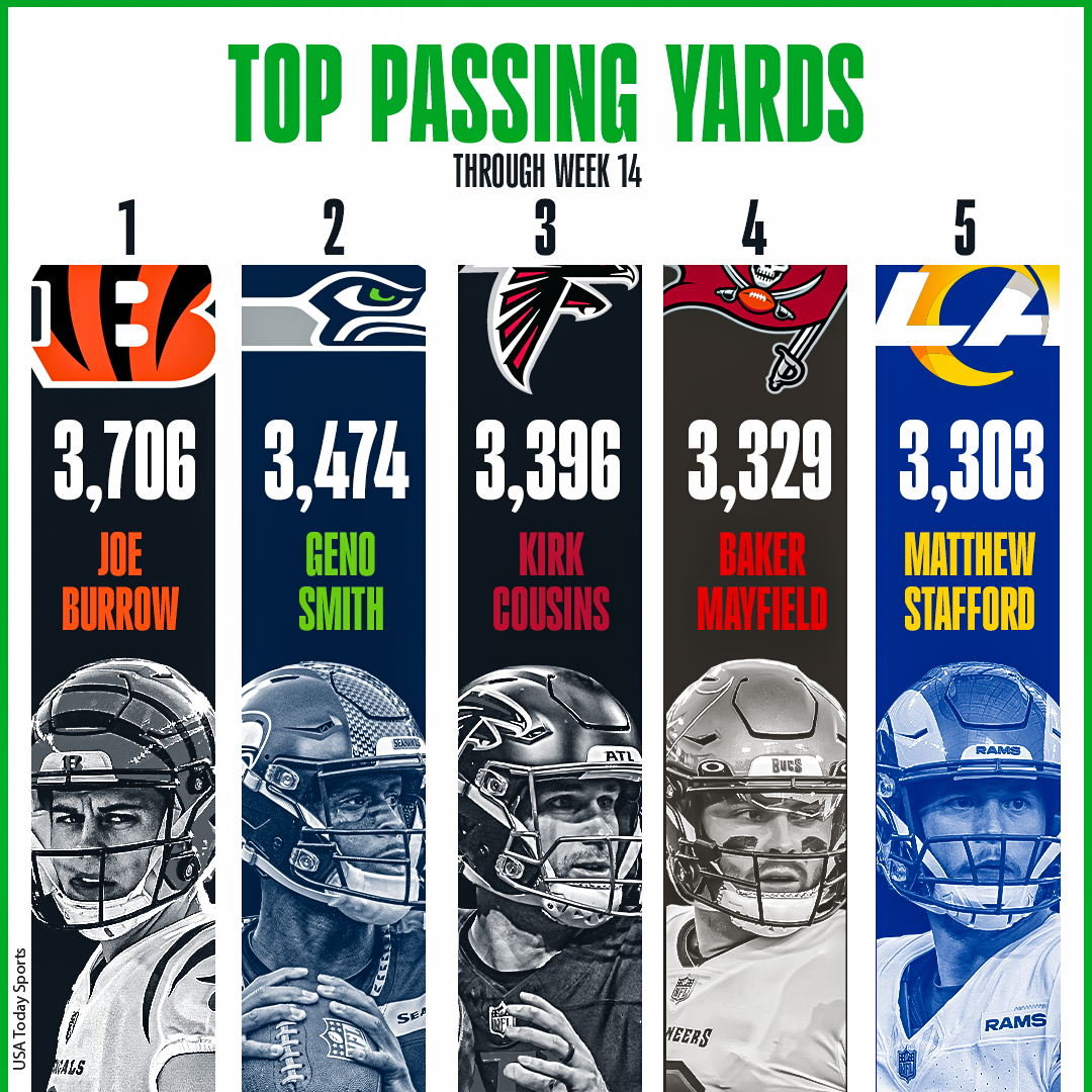 - Joe Burrow: 3,706 yards